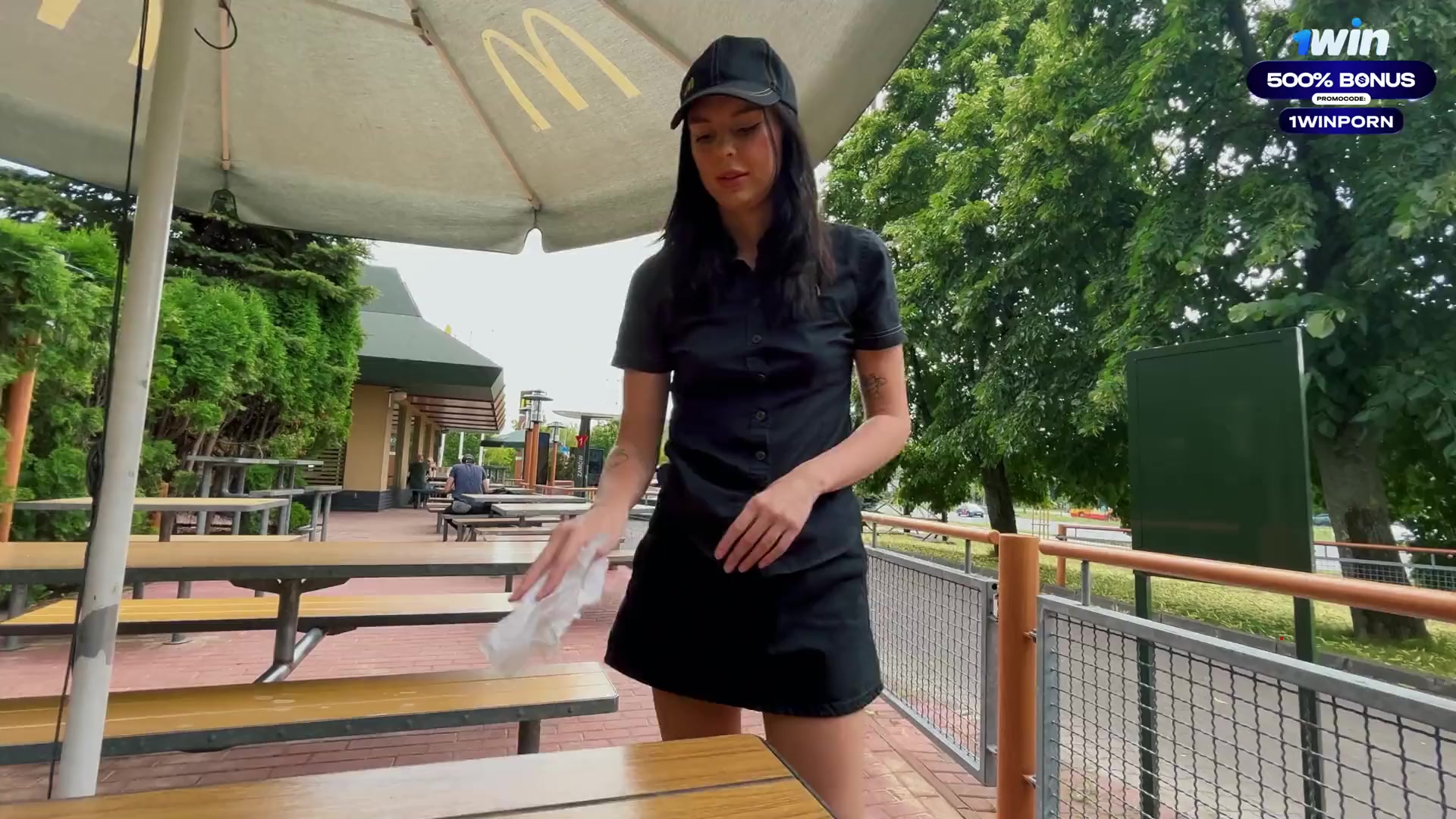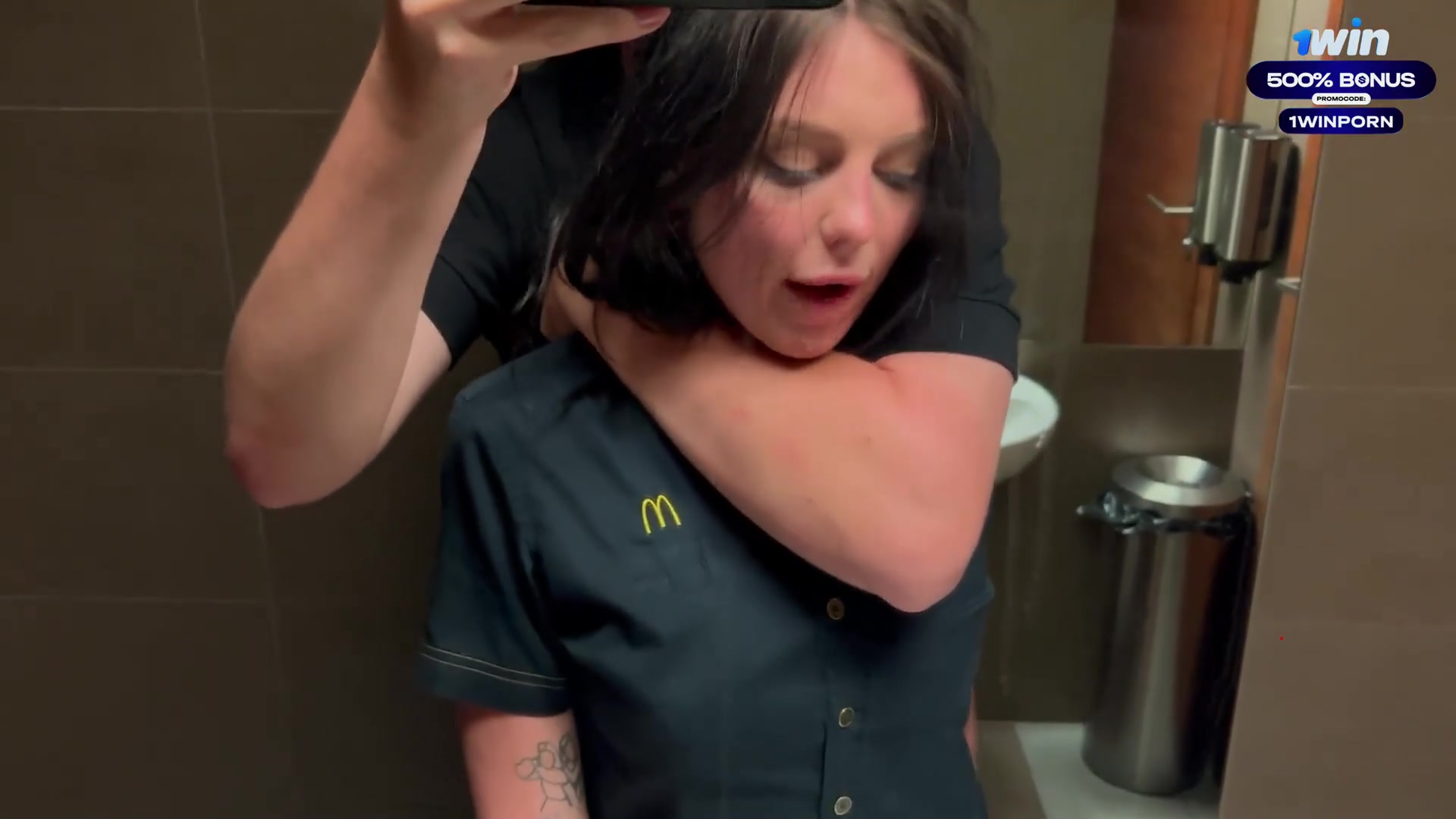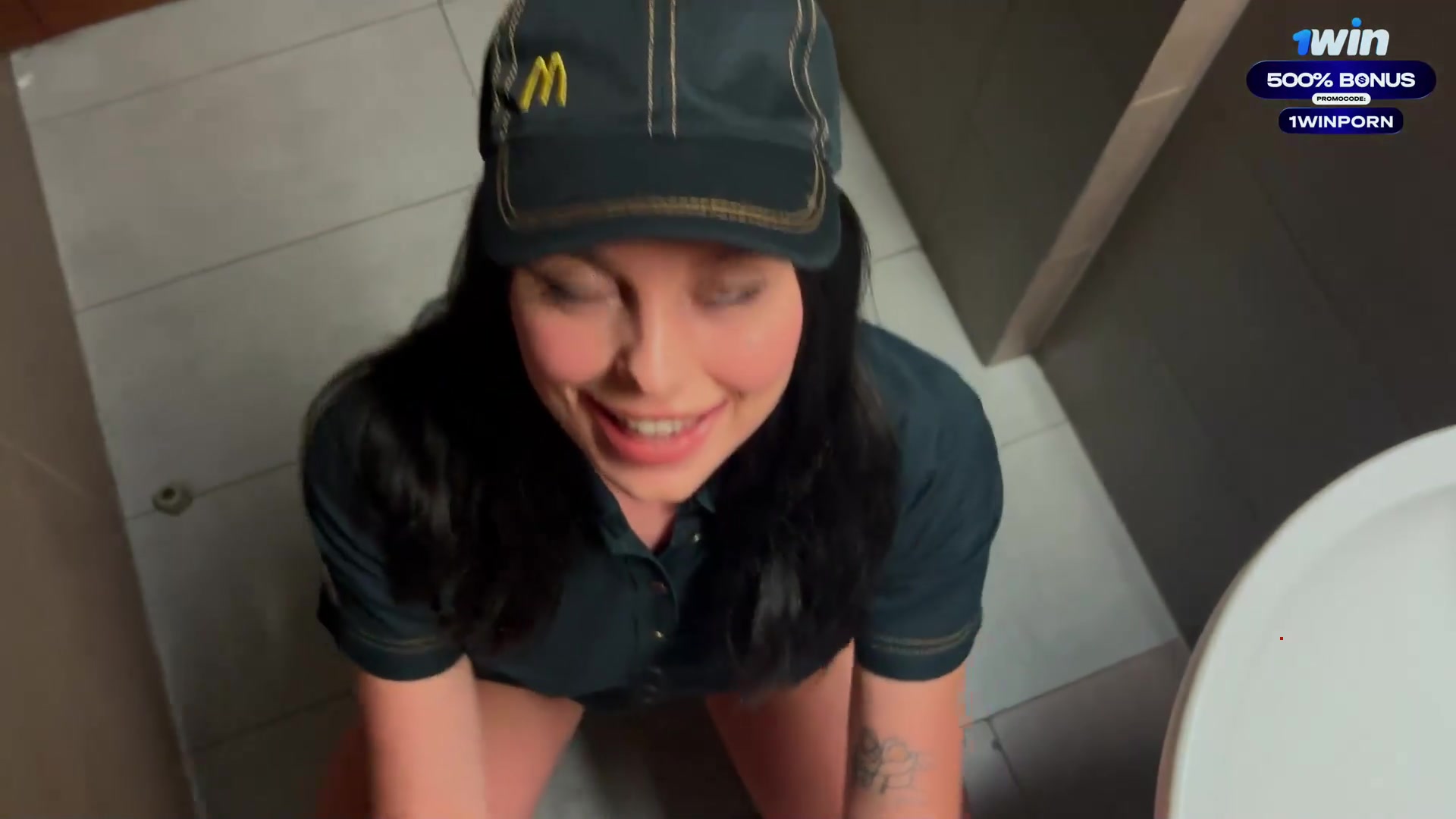 Eva Soda's risky public lovemaking in the toilet with a McDonald's worker. She g