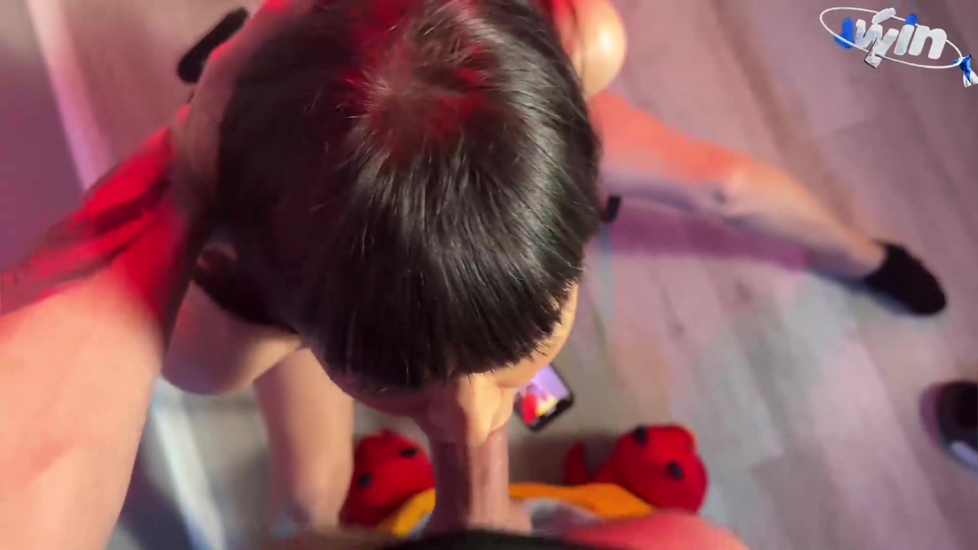Wow, that super-hot brunette deep-throats and gets a fountain in her mouth! Must