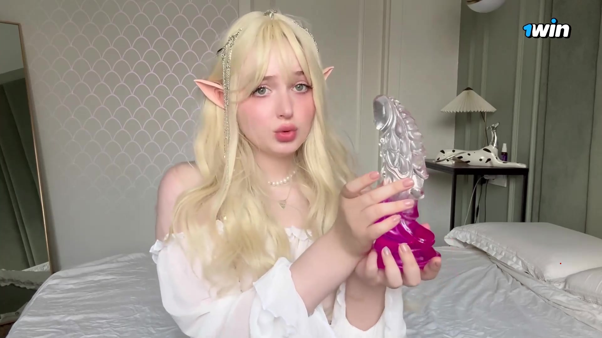 Wet muff of timid Elf teen, fat dildo in taut hole, cosplay roleplay to wish wor