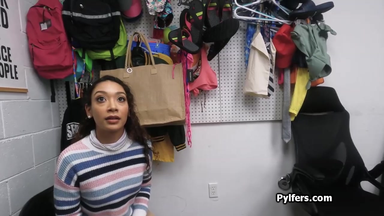 Deep throating Latina thief gets fucked for stealing porn movies