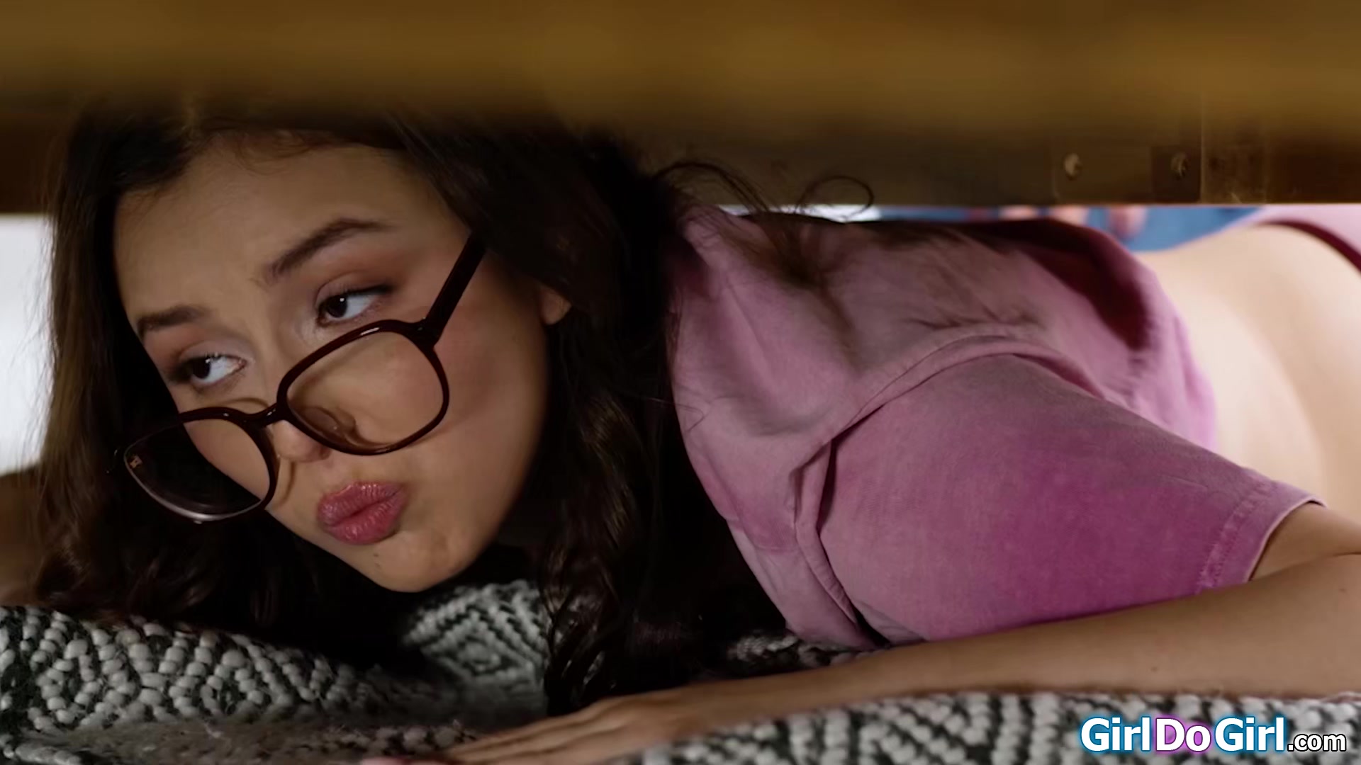 Stepdaughter is stuck under the bed and ready to get spanked