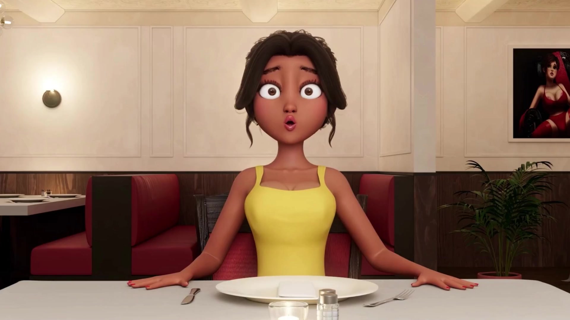 Personal Service ● Restaurant Bliss: Busty Waitress Sucks Shemale Cock Under Table