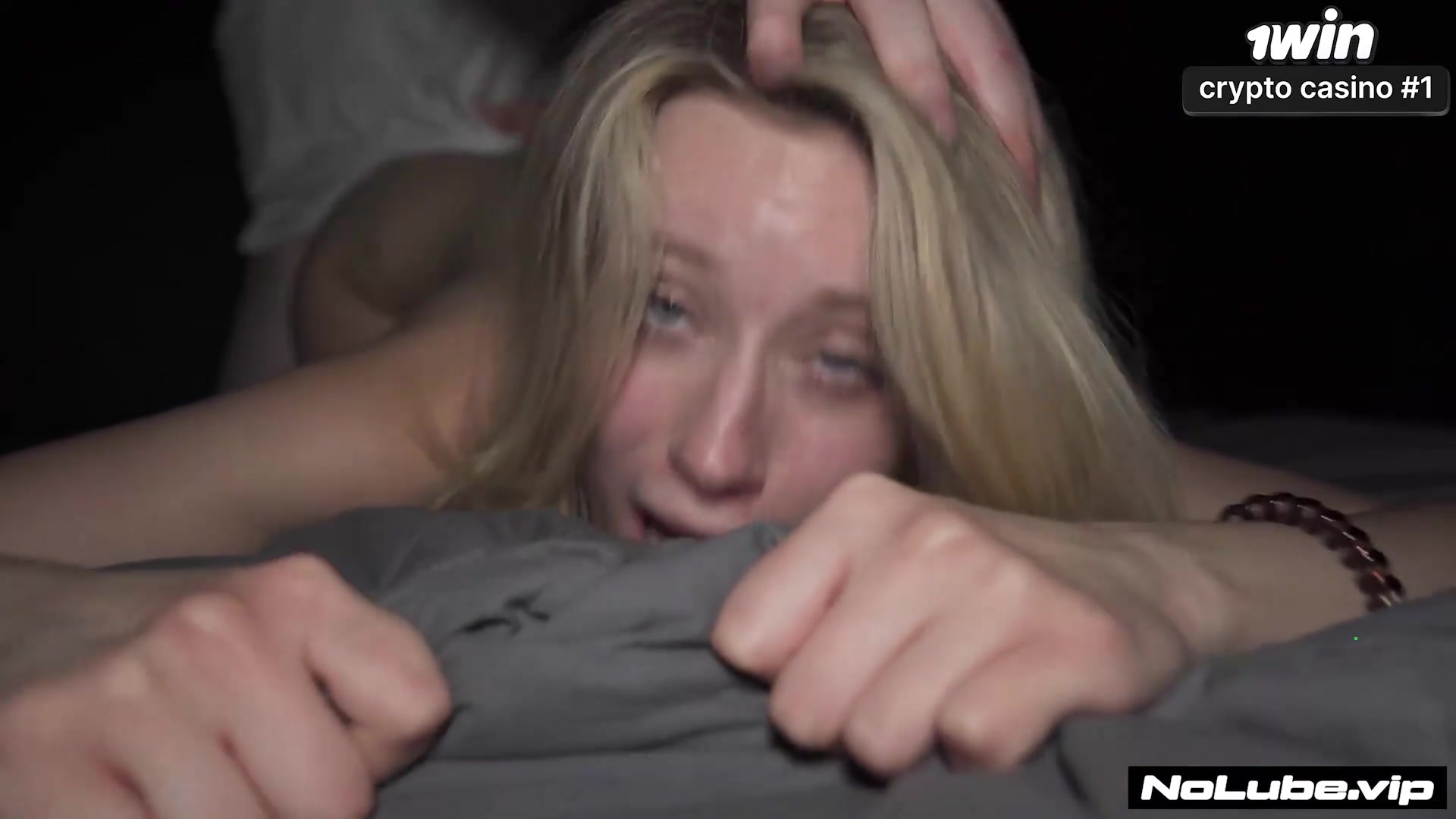 Amateur light-haired teenager takes two schlongs doggystyle, gets creampied and