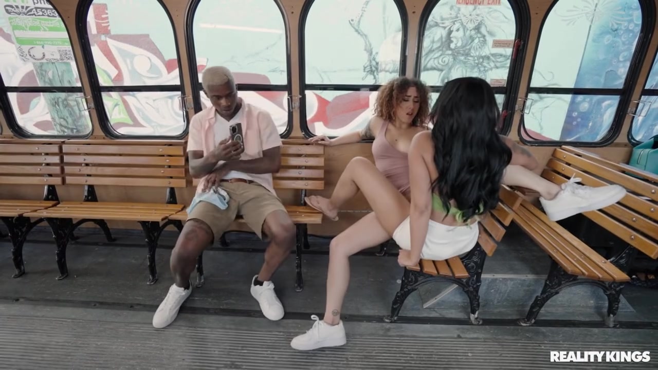 Nymphos Kira Perez And Ameena Greene Share A BBC On A Retro Bus - Kyra Black